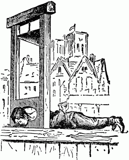 guilhotinei-me. a cabeça rebolou em silêncio para o lado dos rejeitados. repousando